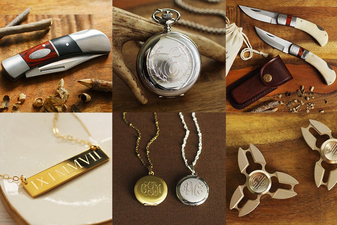 Engraved Groomsman Knives and Bottle Openers: https://www.etsy.com/shop/theengraver