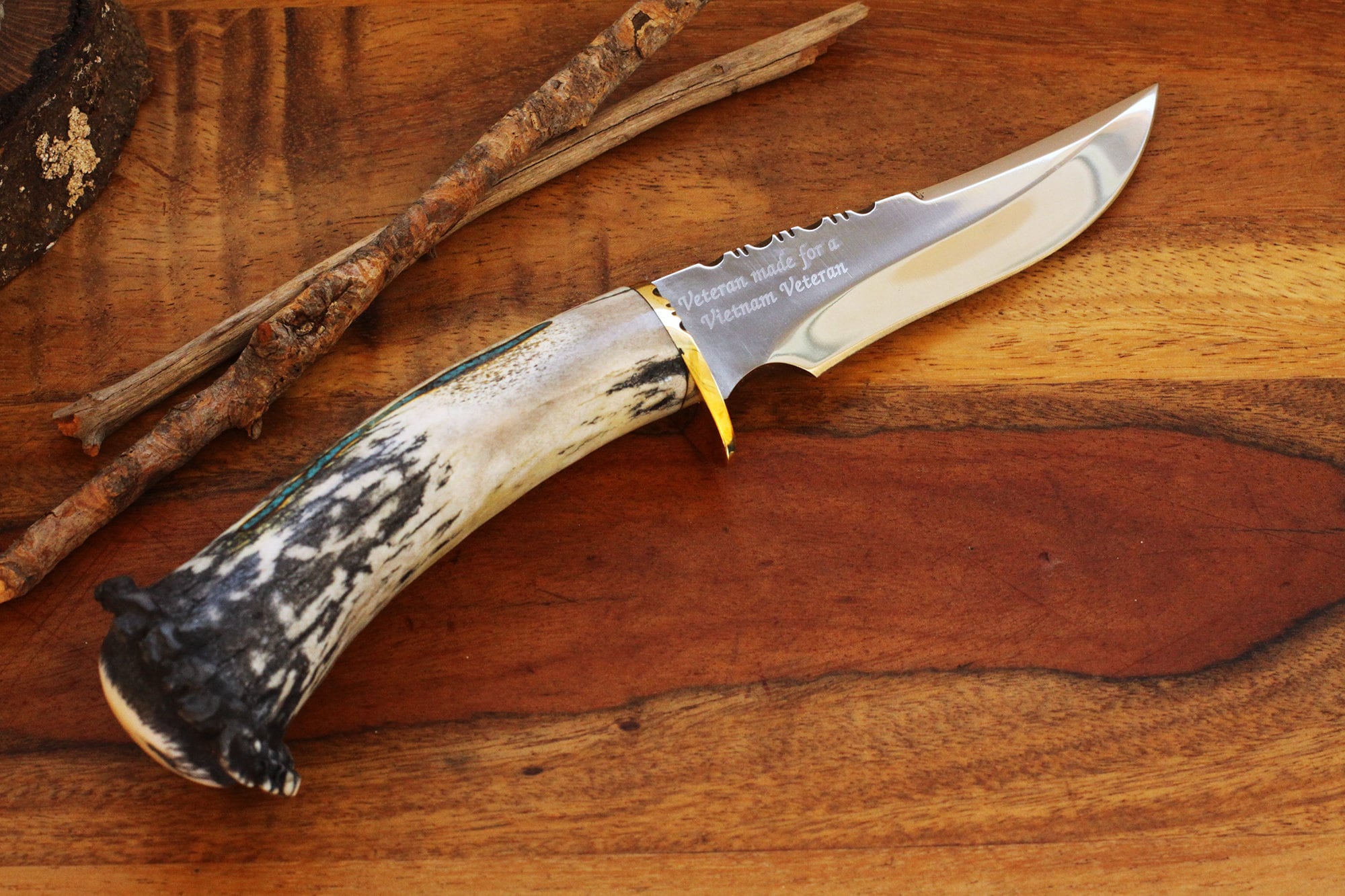 Proudly veteran made, this custom hunting knife is built for reliability in the field, making it the perfect hunters gift or a cherished hunting gift for any enthusiast.
